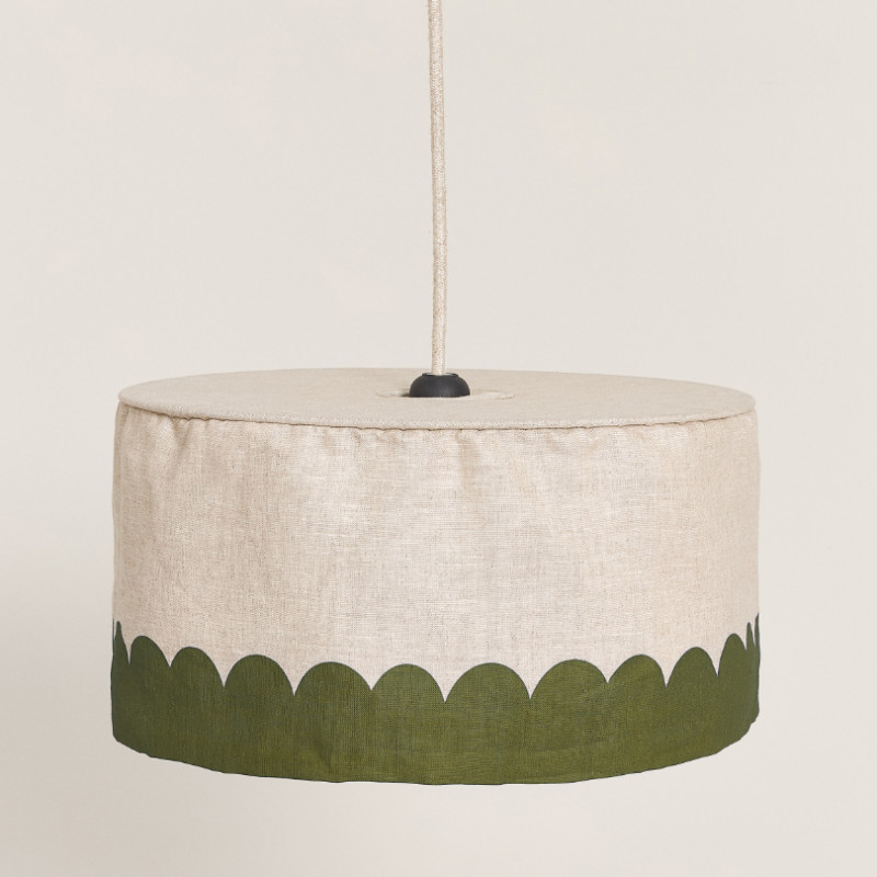 L'abat-jour Vibes 40 cm en lin français, Green de Nobodinoz habille votre suspension lumineuse en transformant votre éclairage en un véritable objet de décoration.