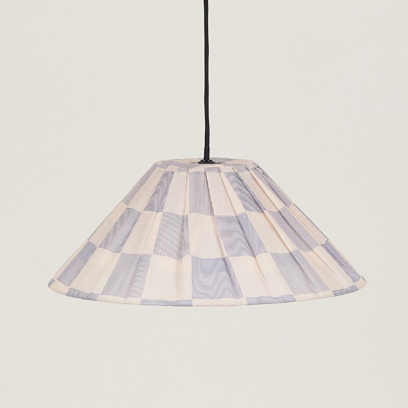 Avec son voile de coton plissé et son imprimé graphique, ce luminaire est la pièce déco idéale à accrocher pour créer une ambiance chaleureuse et un brin rétro au-dessus de la table à manger ou pour sublimer votre coin lecture préféré.