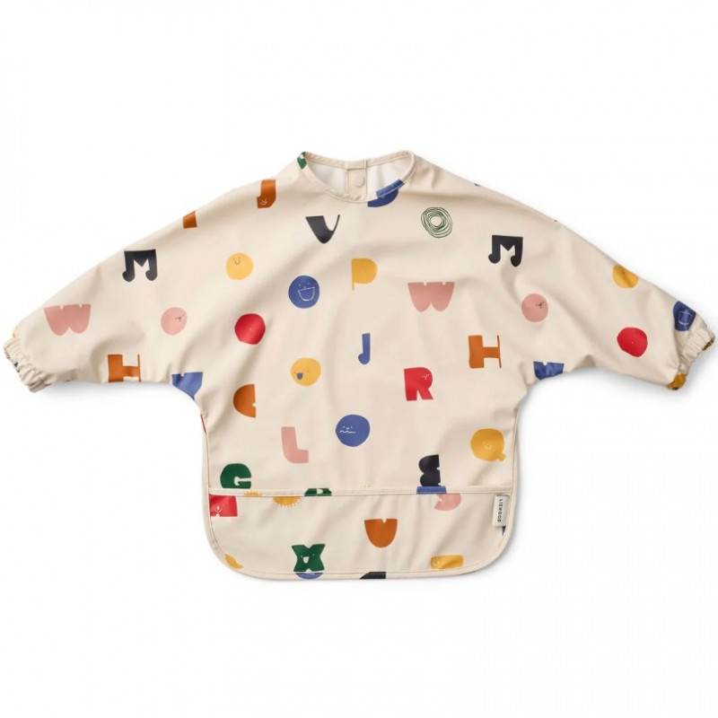 Le bavoir à manches Merle Characters sandy, en polyester 100% recyclé de Liewood est idéal pour protéger les vêtements de votre enfant pendant les repas ou les activités créatives.