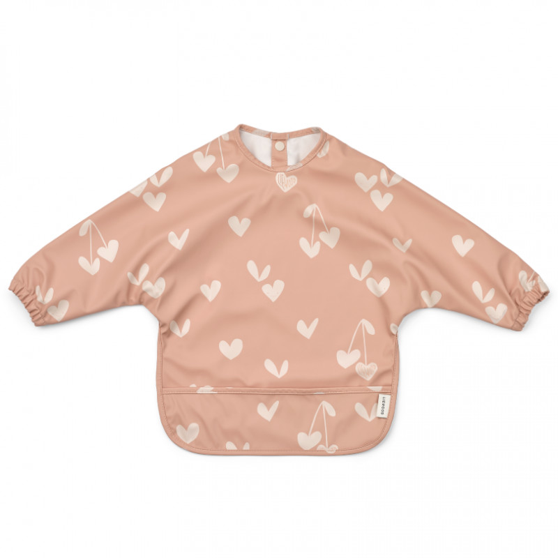 Le bavoir à manches Merle Sweethearts Pale tuscany, en polyester 100% recyclé de Liewood est idéal pour protéger les vêtements de votre enfant pendant les repas ou les activités créatives.