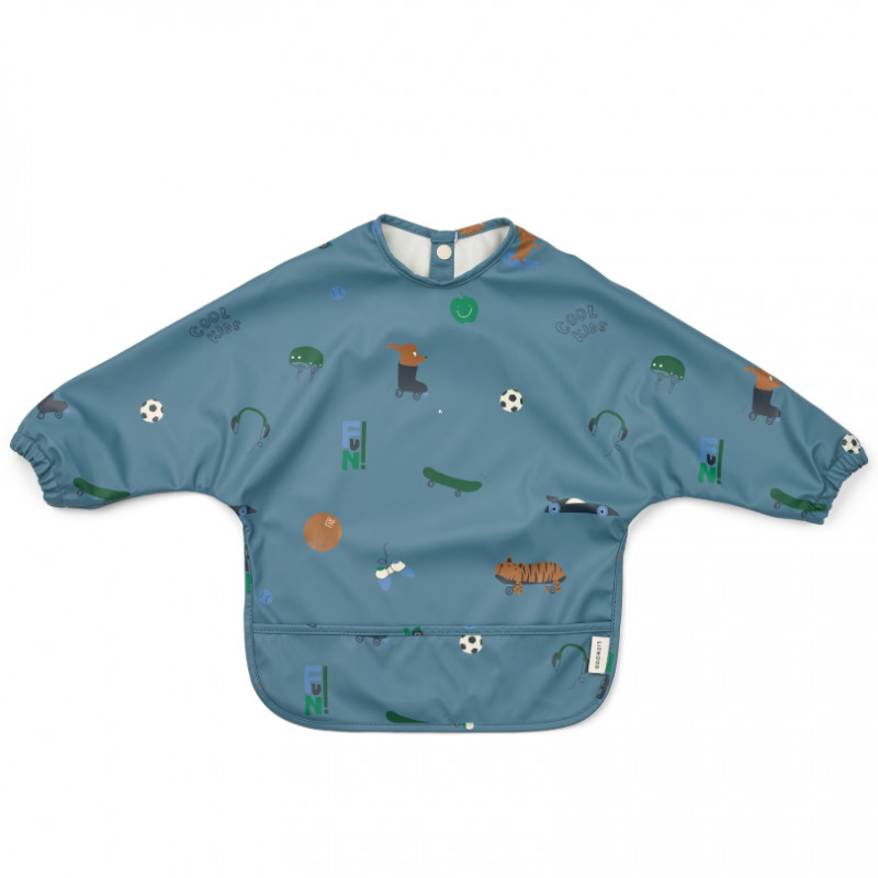 Ce bavoir à manches Merle en polyester 100% recyclé Liewood est idéal pour protéger les vêtements de votre enfant pendant qu'il mange.