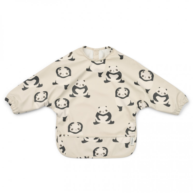 Le bavoir à manches Merle, Panda sandy, en 100% polyester recyclé de Liewood est idéal pour protéger les vêtements de votre enfant pendant les repas ou les activités créatives.