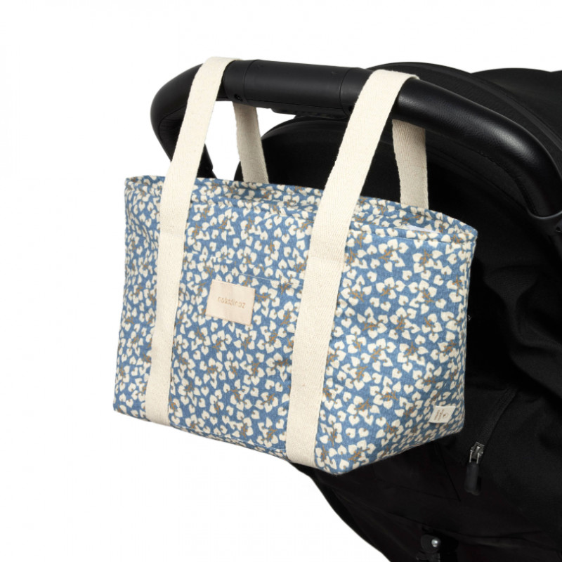 L'organiseur de poussette Opéra, Blue yumiko de Nobodinoz est parfait pour vos sorties avec bébé au quotidien.