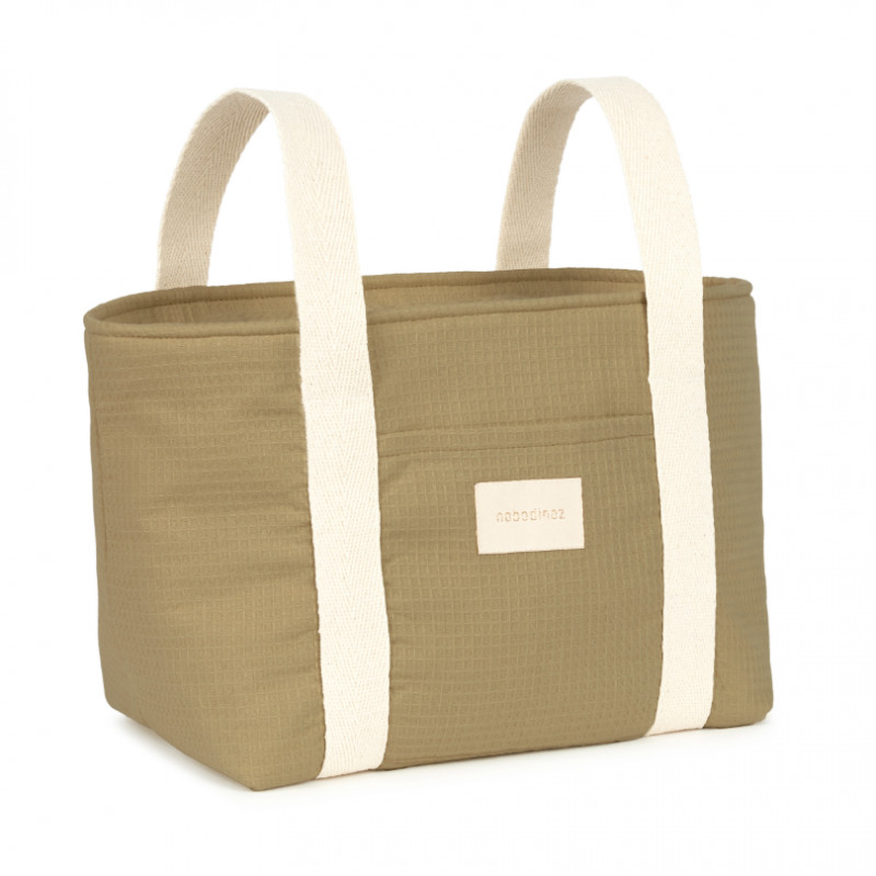 L'organiseur de poussette Opéra, Olive green de Nobodinoz est parfait pour vos sorties avec bébé au quotidien.