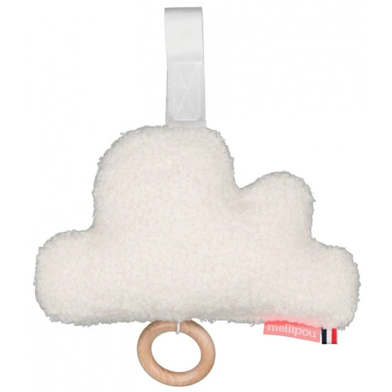 Idéale pour une déco originale et résolument tendance, la boîte à musique nuage en mouton beige Summer de Mellipou, bercera bébé sur des musiques originales.