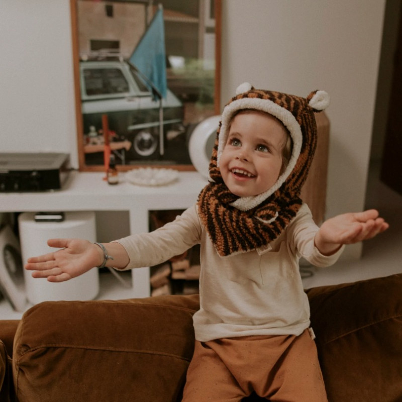 Le bonnet polaire Tigre de Rien que des Bêtises, protégera bien la tête de votre bébé du froid et du vent.
