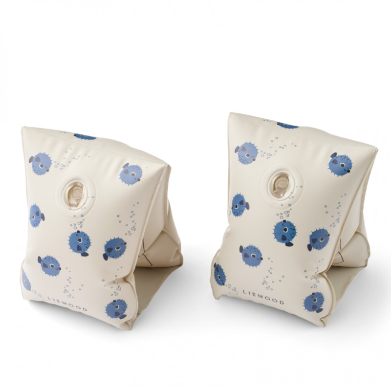Les brassards rectangles, Pufferfish sandy de la marque Liewood, sont des accessoires indispensables pour sécuriser les baignades des jeunes enfants.