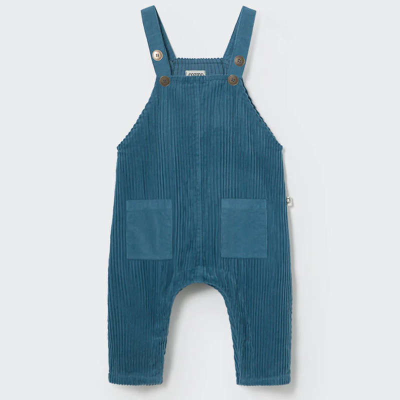 La salopette en velours Dax, Blue midnight de la marque Cozmo, est un essentiel parmi les premiers vêtements de bébé.