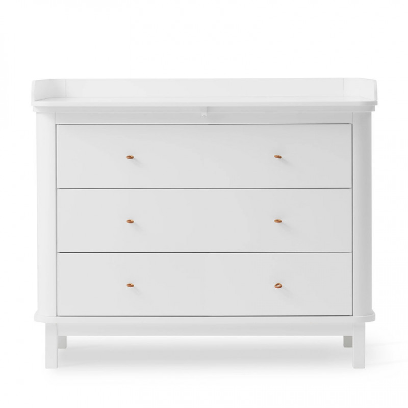 La commode 3 tiroirs Wood avec son grand plan à langer en blanc d'Oliver Furniture offre de belles capacités de rangement.