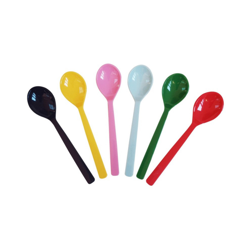 Le lot de 6 cuillères en mélamine, Favorite colors de Rice est un assortiment de cuillères multicolores.