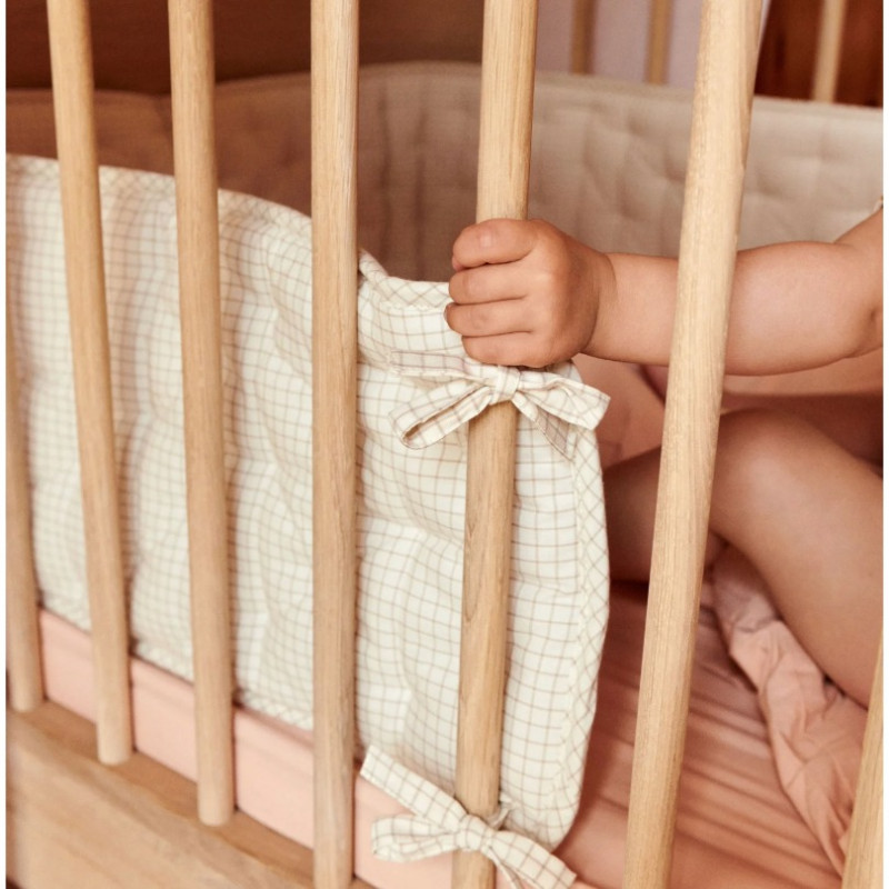 Le tour de lit Nori, Mini check de la marque Dear April est matelassé avec de jolis rubans à nouer aux barreaux.