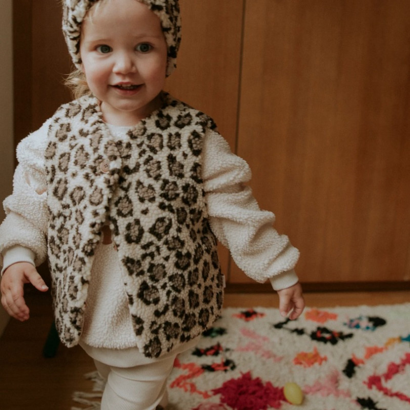 Le gilet sans manche enfant en teddy motif Léopard de Rien que des Bêtises est un accessoire mode aussi confortable que tendance.