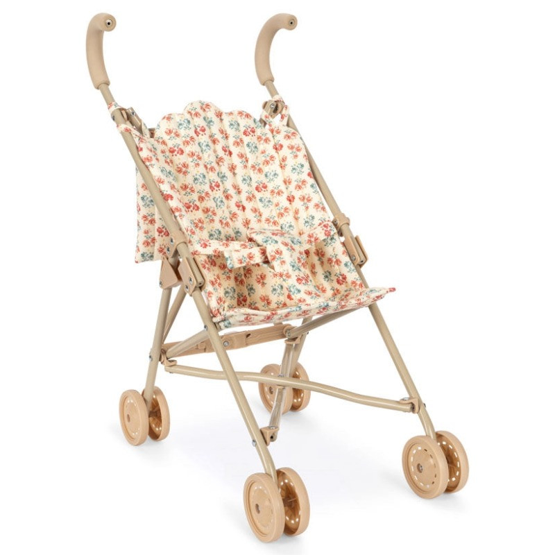 La poussette pour poupée Lumina, de la marque Konges Sloejd, est une élégante poussette à l'imprimé fleuri au style vintage.