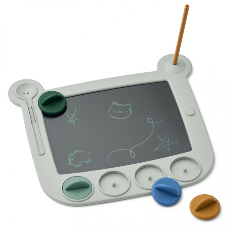 Cette ardoise à dessin, Venzora Pale tuscany multi mix, en forme d’ours est parfaite pour dessiner, s’amuser et recommencer à l’infini. Elle comprend un stylo et 4 tampons en silicone pour créer facilement des formes d'animaux. Légère et facile à emporter, elle se glisse dans un sac pour dessiner partout. Le stylo se fixe dans l’oreille gauche et se range dans l’oreille droite. Un bouton à l’avant permet d’effacer l’écran.