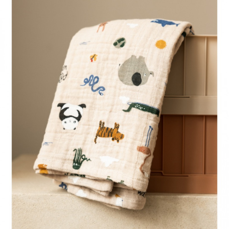 Confectionné en mousseline de coton biologique, ce lange polyvalent est parfait pour envelopper bébé.