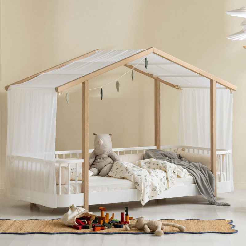 Le lit cabane Wood original peut être personnalisé avec deux ciels de lit différents (vendus séparément) pour créer un univers personnalisé, ludique et propice à l’imaginaire de votre enfant.
