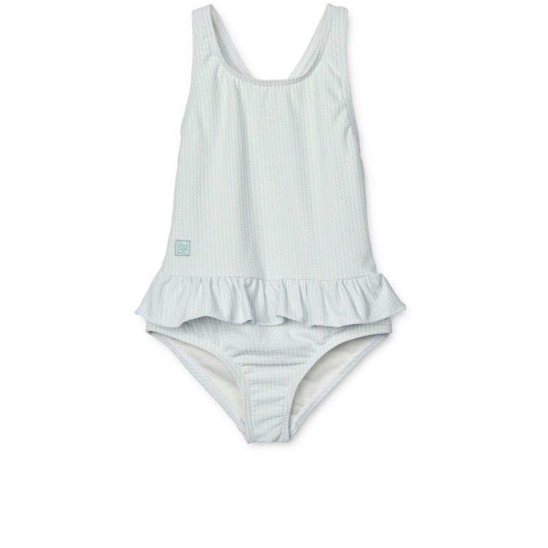 Le maillot de bain une pièce Amara, en Stripe pure sky creme de la creme de Liewood, est parfait pour les journées au bord de l'eau. Pratique et rapide à enfiler, laissez votre petite puce gambader avec style !
