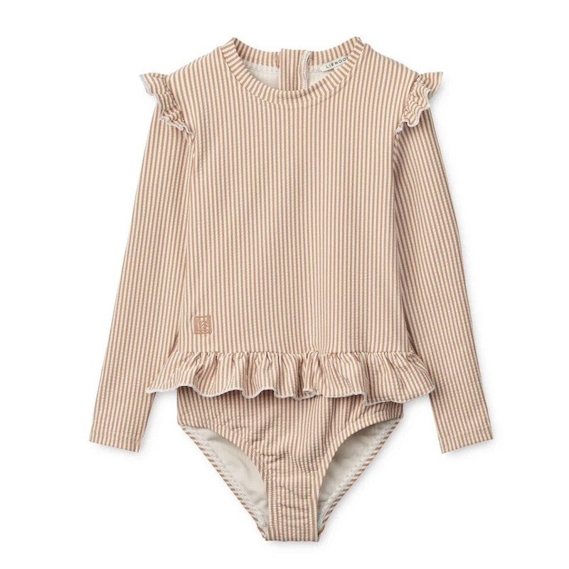 Le maillot de bain body Sille Pale tuscany Creme de la creme de Liewood, est idéal pour les premières baignades de bébé, à la mer comme à la piscine.