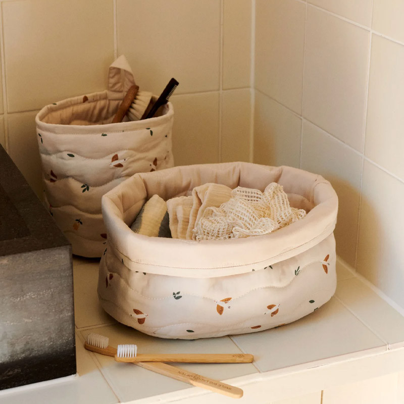 Les paniers de rangement Songbirds de Dear April, sont très pratiques près de la table à langer. Couches ou produits d'hygiène, toutes les affaires de votre bébé seront désormais faciles à trouver et à ranger.