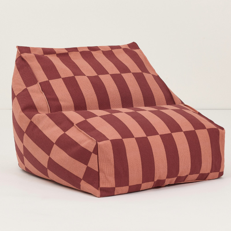 Le Pouf fauteuil Vibes, Rose et terracotta ou maroon tiles de nobodinoz procure une assise très confortable pour petits et grands grâce à sa forme.