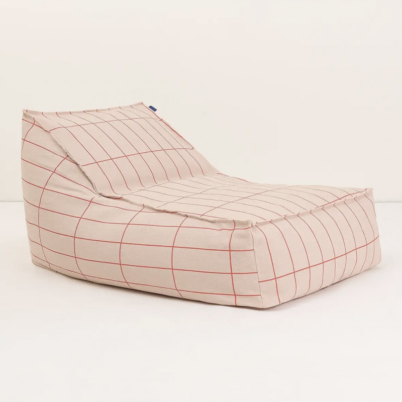 Les petits comme les grands enfants vont adorer s’assoir sur le pouf fauteuil Chelsea Eco-Velours, en ochre pink windowpane de la marque espagnole Nobodinoz. En 100 % polyester recyclé et rempli de billes de polystyrène, il est à la fois solide et confortable.