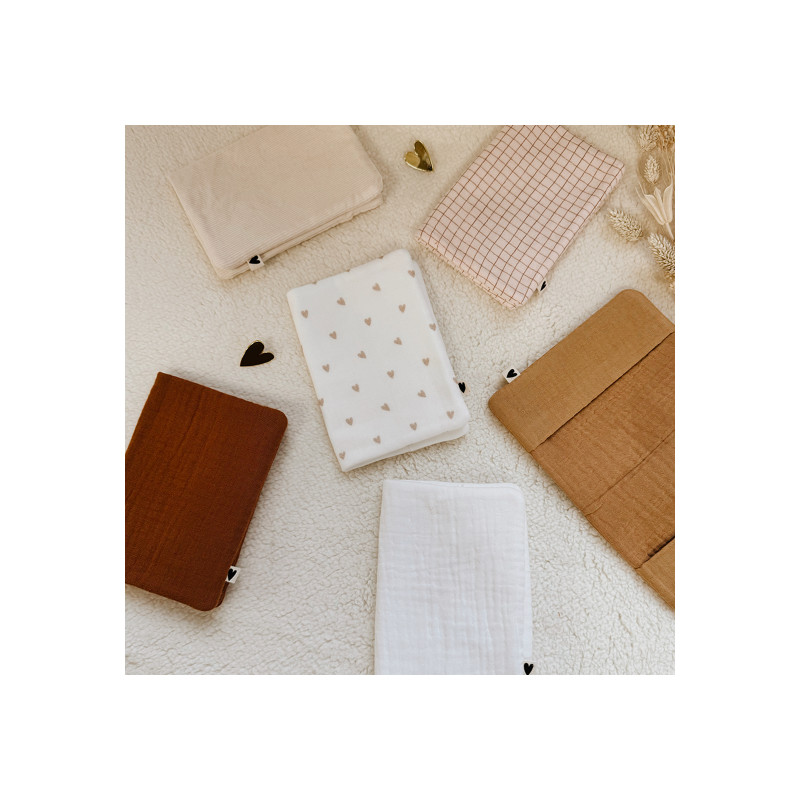 En 100% gaze de coton, ce protège passeport marron allie élégance et praticité.