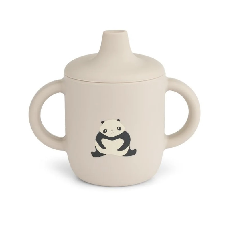 La tasse d'apprentissage à bec souple en silicone alimentaire Neil, Panda Sandy de la marque Liewood, est idéale pour que votre bébé commence à boire tout seul.